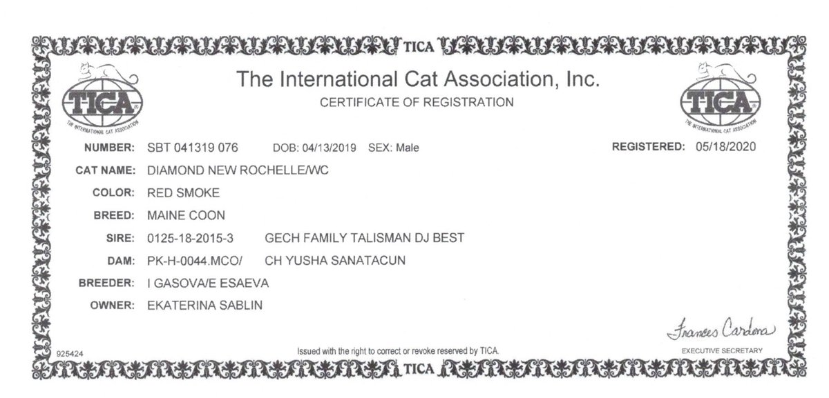 All of our male cats, as well as female Maine Coon cats, are tested for carrying genetic diseases transmitted by inheritance. That is why we are sure of the robust health of our Maine Coon kittens.