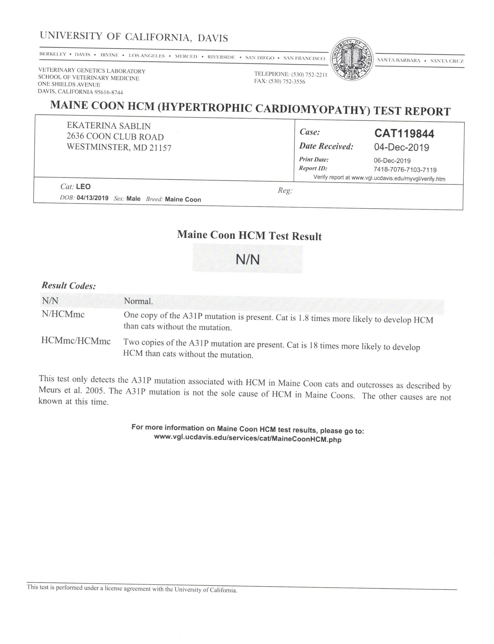 At this page we present our male Maine Coon cats, their photos, pedigree and information on the genetic tests of each of them.